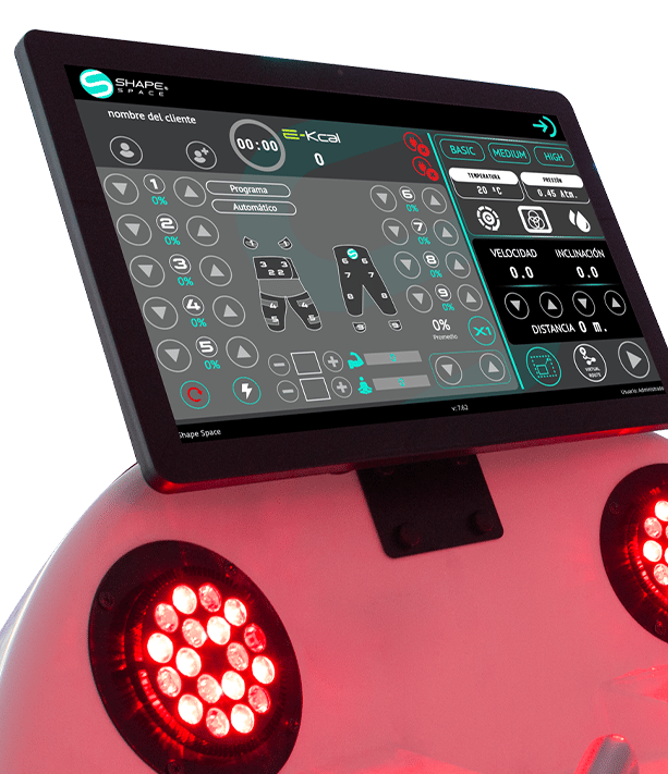 A Shape Space é uma esteira inovadora que combina vácuo, infravermelho, LEDs e eletroestimulação (EMS) para acelerar a queima calórica, tonificar o corpo e melhorar a pele em sessões curtas e eficazes.